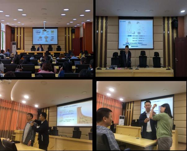 培训会上,俞医生为我们详细地讲述了突发意外事故的应急处理,并为我们做示范,让我们了解到了现场急救的重要性。俞医生详细讲解了最新的心脑血管疾病预防保健知识,同时,他针对教师职业病——肩周炎、颈椎、腰椎等知识进行了介绍,让教师认识到健康的重要性,明白了防病胜于治病。最后俞医生,还进行了现场医疗咨询。俞医生的培训内容丰富实用,讲授方式生动有趣,老师们听得很认真,并积极地参与互动,现场气氛热烈。