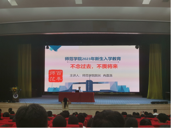 随后老生代表韩洁分享了自己求学的经历与感悟,号召同学们要珍惜宝贵的大学时光,学有所获、学有所成,成为一名优秀的老员工;新生代表余思蕾讲述了对未来学习生活的期待与憧憬,表示要做胸怀理想、坚韧不拔、奋勇争先的师范生;教师代表雷霖副教授祝贺全体新生进入到了新的求学阶段,叮嘱同学们认真钻研、不负韶华,提升自己的能力,在迎接机遇与挑战中脱颖而出,绽放属于自己的人生光彩。