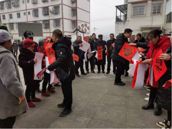 活动现场,老师们挥毫泼墨,为社区居民书写春联和“福”字,将新春的祝福送到群众手中。一副副寓意吉祥的春联,一张张喜气洋洋的“福”字,承载着对居民的美好祝愿,也传递着公司的温暖关怀。社区居民们拿到春联后,脸上洋溢着幸福的笑容,纷纷表示感受到了浓浓的年味和公司的深情厚谊。