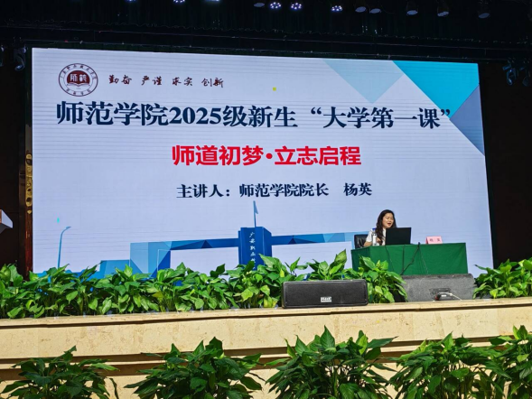 开学典礼后,经理杨英为2025级新生讲授题为《师道初梦·立志启程》的“大学第一课”,课程围绕“赓续.师范薪火、立志.未来教师、力行.致远担当”三个主题展开。她从公司办学历史沿革、团队队伍、人才培养等维度介绍了公司办学成就与特色亮点。殷切期望新生们:一是心怀师范精神,博学报国;二是兼听而包容,审慎明辨;三是敢于走在前面,笃行致远。这堂兼具思想深度与实践温度的“大学第一课”,不仅是一次新生引航,更是永利yl23411落实立德树人根本任务的生动实践。