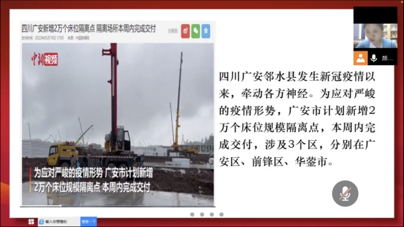 在广安突发新冠疫情的情况下,为了更好的去增强群众的凝聚力,构筑更加牢固的疫情严密防线。根据支部实际并结合疫情防控永利yl23411教师支部于2022年5月22日在腾讯会议开展“众志成城,共同抗疫”主题党课,由党总支统战委员颜光霞同志主讲。