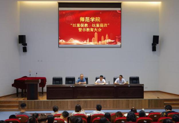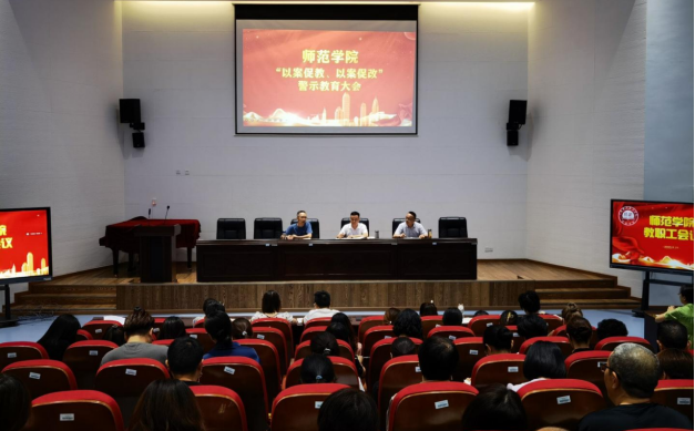 2023年9月19日下午,永利yl23411在翔凤厅召开以案促教、以案促改的警示教育大会。党总支书记彭松林主持会议,全体教职工参加会议。
