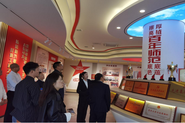 2024年03月27日下午,广安市教育体育体局和各县(市、区)教育体育主管部门分管负责人、一体化共同体成员及专家指导组成员共计70余人参观了党员教育活动中心,就如何以党建引领思政育人,思政课第二课堂如何发挥阵地优势和育人功能等进行了交流。