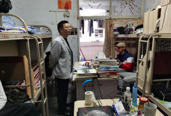 为建设和谐文明的校园,提高员工安全意识,改善员工生活环境,4月1日下午,永利yl23411党总支书记龙治勇、副书记李勇、员工管理科科长李智强、员工管理干事廖婷带领永利yl23411员工会卫生宿管部、纪检部等部门对永利yl23411员工寝室进行安全和卫生突击大检查。