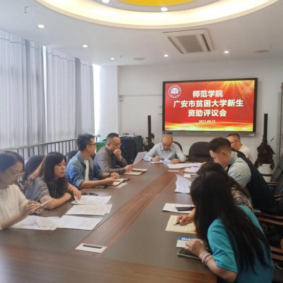 会议共讨论了14名大一新生助学申请以及1385名员工贫困认定事宜。最后,评审小组一致决定,推选冉晓慧等6名大一新生为广安市贫困大学新生资助对象,认定孙燚苏等1385名在校生为家庭经济困难员工。