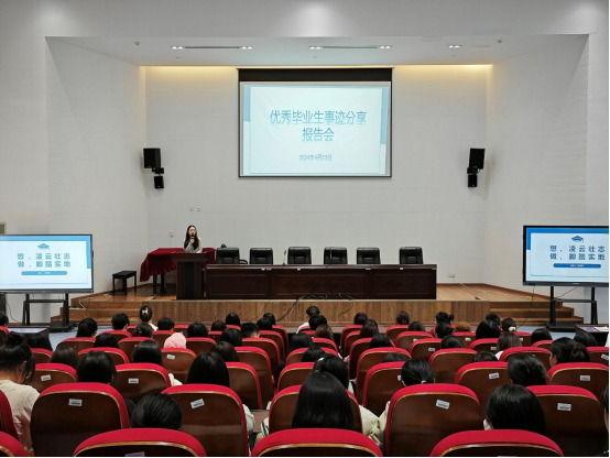 邵宇莎同学通过勤奋学习于2022年9月专升本考入西华师范大学汉语言文学专业学习,今年4月又被新疆师范大学文艺学专业录取为2024级研究生。报告会上,邵宇莎分享了她从一名普通专科生如何一步步成长为一名研究生的心路历程,给学弟学妹们传授了专升本备考过程中的宝贵学习经验,鼓励学弟学妹们去突破自己,不断提升自身综合素质,做到“想,凌云壮志;做,脚踏实地”,为了理想坚持到底。