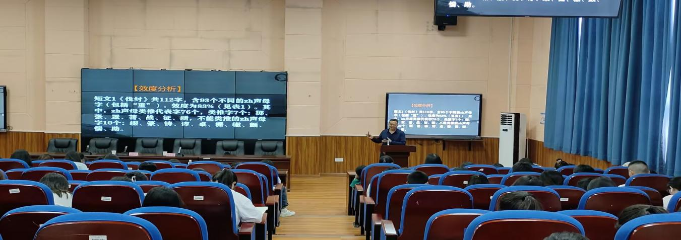 周华银是永利yl23411副教授,先后担任永利yl23411原教科所负责人、教研处(教研中心)负责人及教学督导室副主任、教研处副处长等职务,长期致力于职业教育与汉语言文学教育研究。本次讲座周华银分别围绕平翘舌音混淆的原因及传统教学方法的不足、平翘舌音字集中识记短文的编写原则、韵文识记翘舌音字的应用实践三个方面,进行了深入浅出的理论讲解和互动练习,周华银还示范了他独创的韵文套用民歌练习方法,通过歌曲有趣、高效地练习普通话平翘舌音。