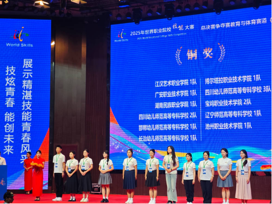 08月27日至31日,2025年世界职业院校技能大赛总决赛争夺赛教育与体育赛道高职1组在湖南长沙成功举办。该赛道汇聚了全国小学教育、幼儿教育专业领域共计117支参赛队伍。经过激烈角逐,永利yl23411孙琳、唐语晗、杨钰灵、吴诗羽四位同学组成的代表队,在何顺莉等老师的全力指导下,奋勇拼搏,最终斩获大赛铜奖,实现了公司在该赛项中参赛与获奖的历史性“双突破”。