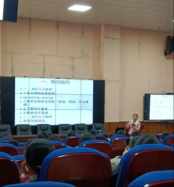 讲座中,两位老师对大学英语新三级考试题型进行了全面梳理,主要包括听力,阅读,写作三个板块六个任务的内容,详细分析了每个任务的题型特点,考试要求和答题技巧,让员工们对考试有了清晰、全面的认识。讲座现场老师带领同学们一起实战演练,将理论和实践有机结合,随后进行查漏补缺,并总结重点和注意事项,讲座中,员工们积极参与,配合默契,训练效果显著,同学们纷纷表示本次讲座的备考技巧很实用,对接下来的大学英语新三级考试充满信心。