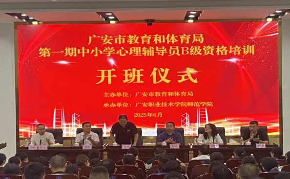 6月22日上午,广安市第一期中小学心理辅导员B级资格培训在公司明德楼先圣厅开班,全市各区县中小学心理辅导员共254人参加了此次培训。广安市教育和体育局党组成员、副局长屈昌明、徳艺卫科科长张春华、广安职业技术公司党委委员、副董事长袁驰、继续教育公司和永利yl23411相关负责人出席了开班仪式。
